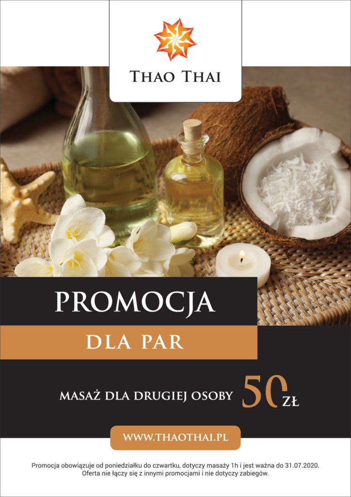 Niesamowita promocja dla PAR. Do końca lipca druga osoba płaci tylko 50zł za wybrany godzinny masaż. Promocja obowiązuje od poniedziałku do czwartku.