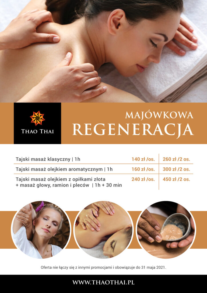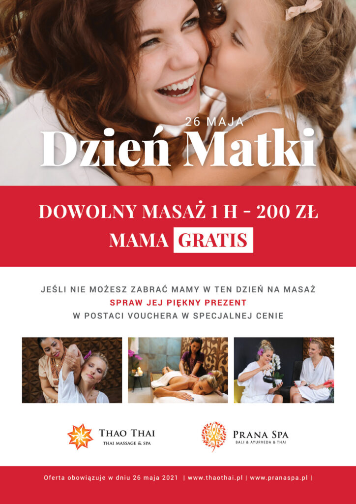 A jeśli nie możecie tego dnia spędzić z nami, równie miłym prezentem będzie voucher dla Mamy na masaż do zrealizowania w dowolnym terminie. Może masaż z naszej majowej oferty promocyjnej? (https://www.thaothai.pl/promocje)